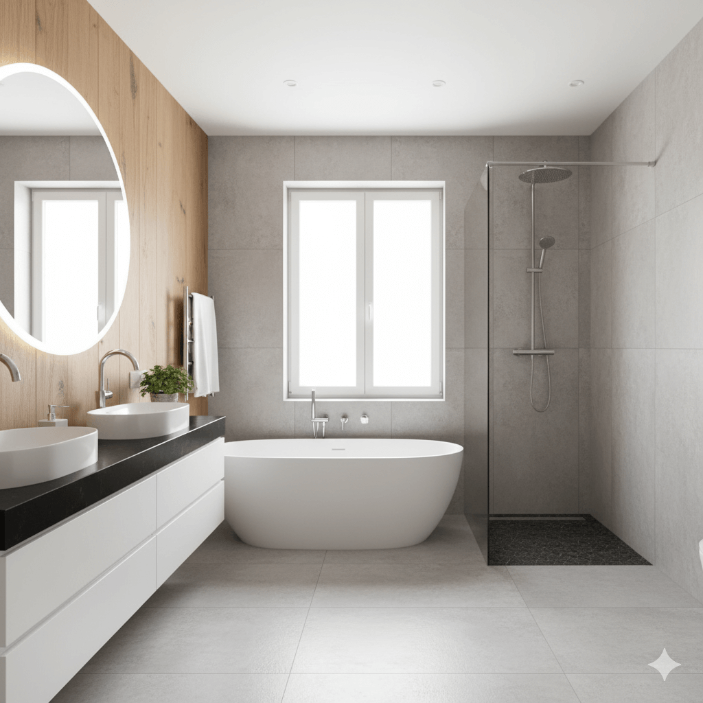 Eine professionelle Badsanierung geht tiefer als die sichtbare Oberfläche. Wir erneuern die komplette Technik hinter der Wand und stellen sicher, dass alle Elemente nicht nur ästhetisch ansprechend, sondern auch auf dem neuesten Stand der Technik und für eine lange Lebensdauer ausgelegt sind.